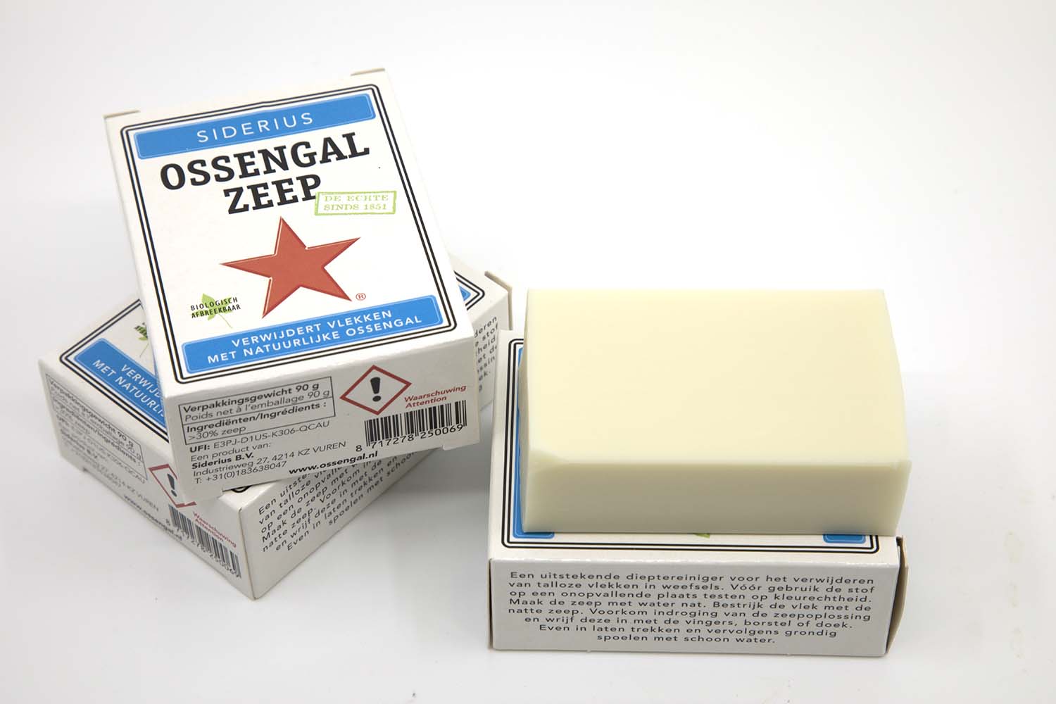 Ossengal is een natuurlijke vlekverwijderaar. Je maakt de vlek in de kleding nat met water, wrijft de zeep er over en doet de kleding in de wasmachine. De vlekken verdwijnen als sneeuw voor de zon.